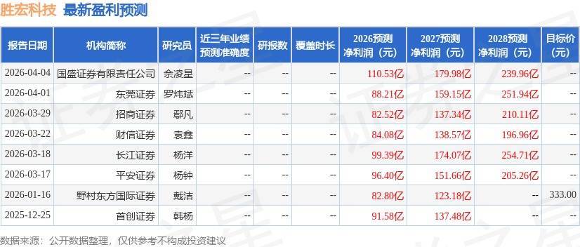 以下是详细的盈利预测信息: